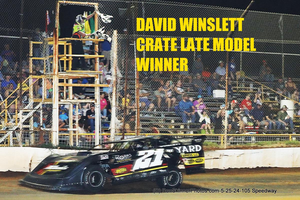 David Winslet also claimed a win on May 25 in his Crate Late Model at 105 Speedway.