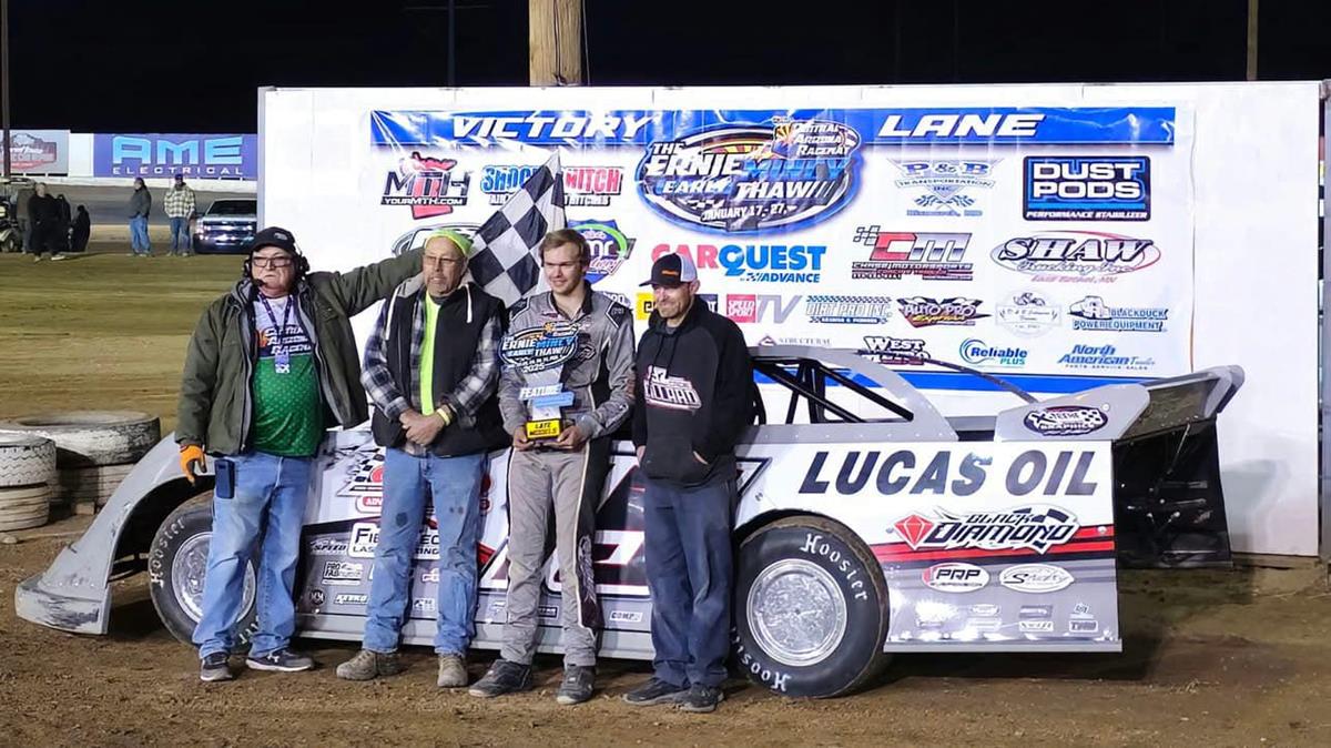 Clay Stuckey pocketed $2,500 for his Friday night win at the Ernie Mincy Early Thaw at Central Arizona Raceway (Casa Grande, Ariz.) with his no. !5 Black Diamond Race Car.